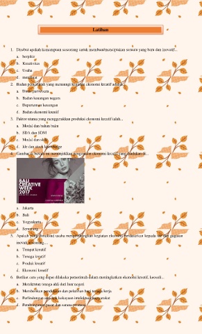 2. Badan pemerintah yang menaungi kegiatan ekonomi kreatif adalah...