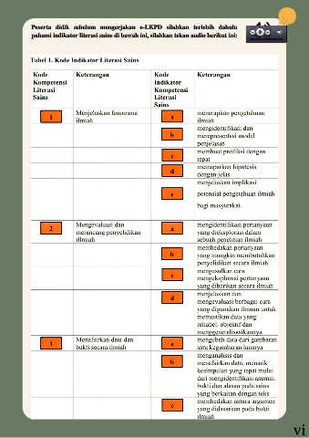 pahami indikator literasi sains di bawah ini, silahkan tekan audio berikut ini: