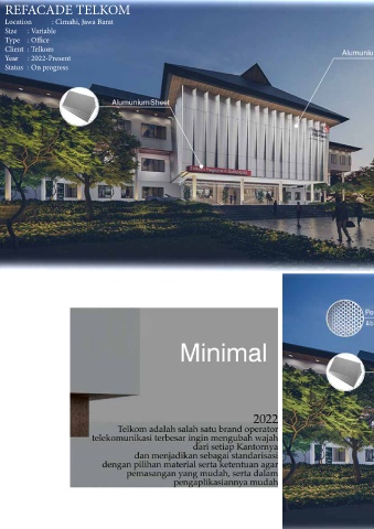 REFACADE TELKOM Location : Cimahi, Jawa Barat Size : Variable Type : Office Client : Telkom Year : 2022-Present Status : On progress