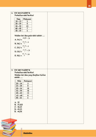 Median dari data yang disajikan berikut