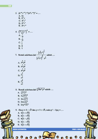 9. Jika = 3 − √5 dan = 3 + √5, maka − 2 = ….