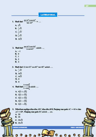 3. Hasil dari 12 sin 45 cos 45 tan 45 adalah ….
