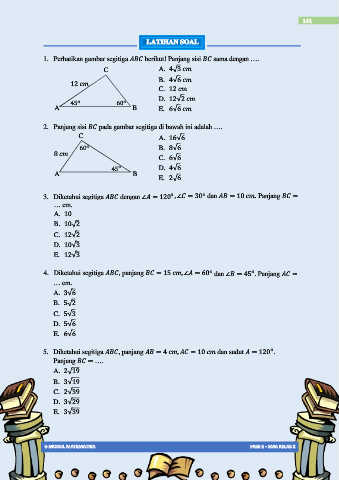 5. Diketahui segitiga , panjang = 4 , = 10 dan sudut = 120 .
