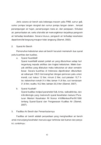 Syarat kualitas meliputi parameter fisik, kimia, radioaktivitas, dan