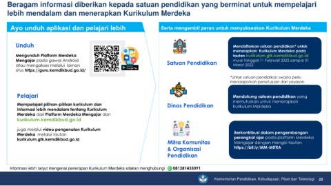 Informasi lebih lanjut mengenai penerapan Kurikulum Merdeka silakan menghubungi 081281435091