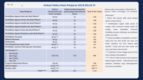 Alokasi Waktu Mata Pelajaran SDLB KELAS VI