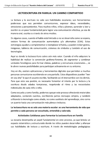 Colegio de Educación Especial “Nuestra Señora del Carmen” - ASPRONTE Nuestra Voz nº 51