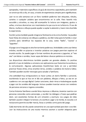 Colegio de Educación Especial “Nuestra Señora del Carmen” - ASPRONTE Nuestra Voz nº 51