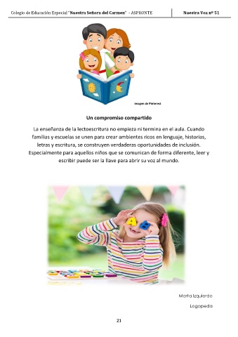 Colegio de Educación Especial “Nuestra Señora del Carmen” - ASPRONTE Nuestra Voz nº 51