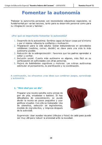 Colegio de Educación Especial “Nuestra Señora del Carmen” - ASPRONTE Nuestra Voz nº 51