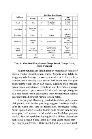 Tabel 4. Klasifikasi Kesejahteraan Warga Rumah Tangga Petani,