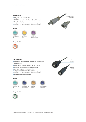 􏰀 E-2000® connector with Active Core Alignment 􏰀 Easy lever locking
