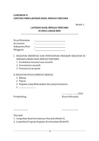 CONTOH FORM LAPORAN HASIL MINGGU PERTAMA