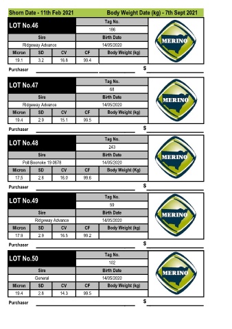 Shorn Date - 11th Feb 2021 Body Weight Date (kg) - 7th Sept 2021