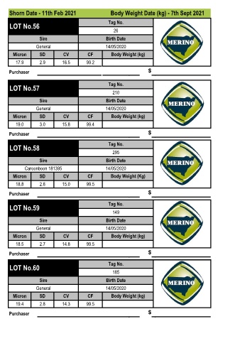 Shorn Date - 11th Feb 2021 Body Weight Date (kg) - 7th Sept 2021