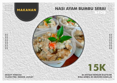 NASI AYAM BUMBU SERAI Makanan #F06 15K Ready Minggu Di antar dengan biaya 5k Close Pre-order Jumat Bisa Ambil Di Gedung Gereja