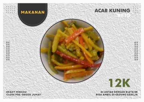 ACAR KUNING Makanan #F10 12K Ready Minggu Di antar dengan biaya 5k Close Pre-order Jumat Bisa Ambil Di Gedung Gereja