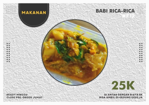 BABI RICA-RICA Makanan #F12 25K Ready Minggu Di antar dengan biaya 5k Close Pre-order Jumat Bisa Ambil Di Gedung Gereja