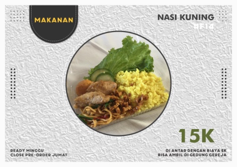 NASI KUNING Makanan #F14 15K Ready Minggu Di antar dengan biaya 5k Close Pre-order Jumat Bisa Ambil Di Gedung Gereja