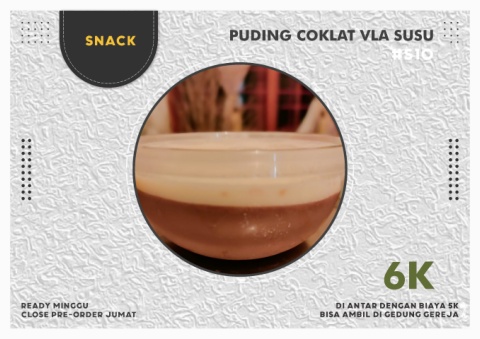 PUDING COKLAT VLA SUSU SNACK #S10 6K Ready Minggu Di antar dengan biaya 5k Close Pre-order Jumat Bisa Ambil Di Gedung Gereja