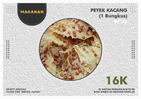 PEYEK KACANG Makanan (1 Bungkus) #F03 16K Ready Minggu Di antar dengan biaya 5k Close Pre-order Jumat Bisa Ambil Di Gedung Gereja