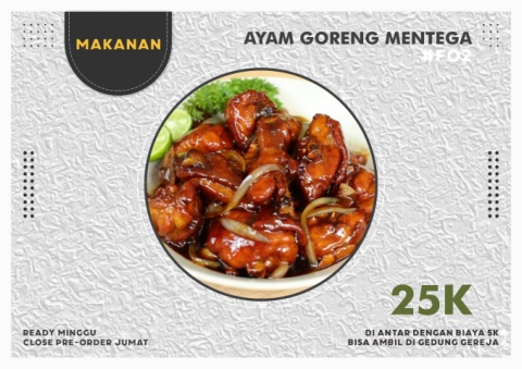 AYAM GORENG MENTEGA Makanan #F02 25K Ready Minggu Di antar dengan biaya 5k Close Pre-order Jumat Bisa Ambil Di Gedung Gereja