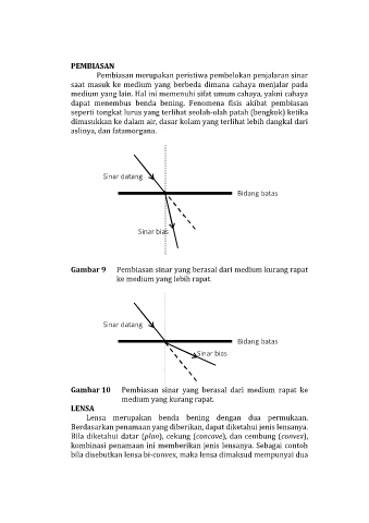Gambar 10 Pembiasan sinar yang berasal dari medium rapat ke