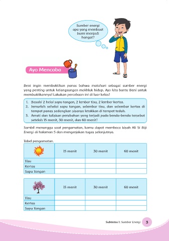 Beni ingin membuktikan panas bahwa matahari sebagai sumber energi
