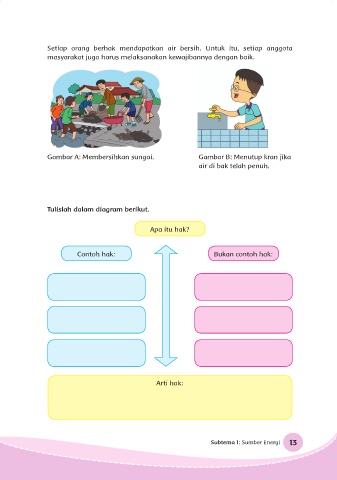 Gambar A: Membersihkan sungai. Gambar B: Menutu kran jika