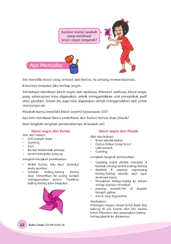 Siti belajar membuat kincir angin dari ayahnya. Menurut ayahnya, kincir angin