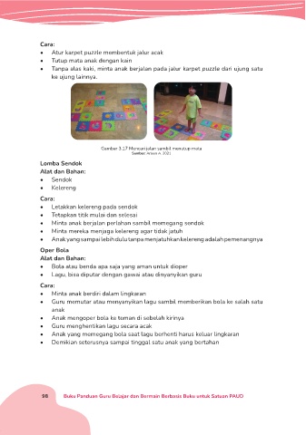 • Tanpa alas kaki, minta anak berjalan pada jalur karpet puzzle dari ujung satu