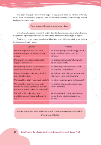 Memprioritaskan buku yang disukai Memilihkan buku dengan amanat atau