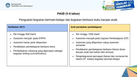Penguatan kegiatan bermain-belajar dan kegiatan berbasis buku bacaan anak.