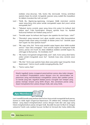 Lani : “Ah, saya tahu, Bu! Tentu saja sendok sayur logam akan lebih mudah
