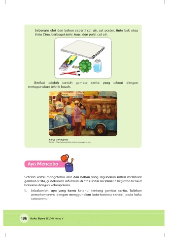 beberapa alat dan bahan seperti cat air, cat poster, tinta bak atau
