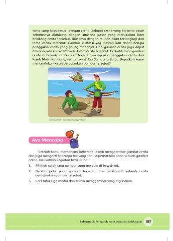tema cerita tersebut. Gambar ilustrasi yag ditampilkan dapat berupa