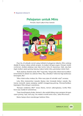 “Mira tidak nafsu makan, Bu. Mira mau jajan di sekolah saja!” serunya.