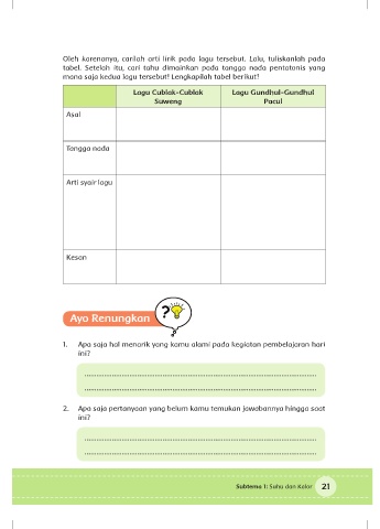 mana saja kedua lagu tersebut! Lengkapilah tabel berikut!