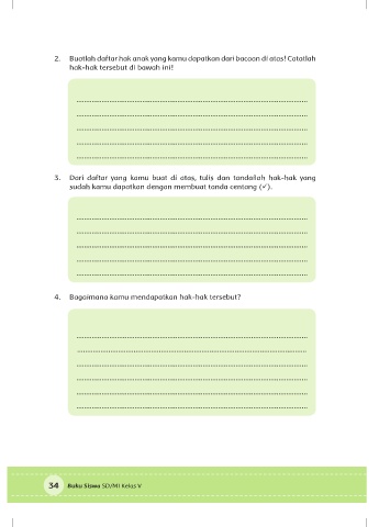 3. Dari daftar yang kamu buat di atas, tulis dan tandailah hak-hak yang