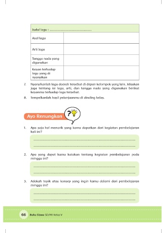 7. Nyanyikanlah lagu daerah tersebut di depan kelompok yang lain. Jelaskan