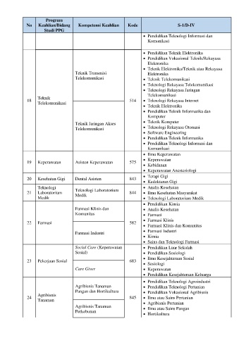No Keahlian/Bidang Kompetensi Keahlian Kode S-1/D-IV