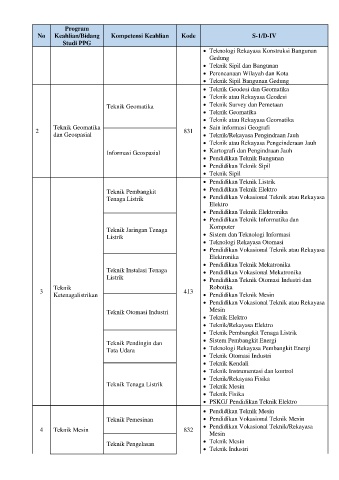 No Keahlian/Bidang Kompetensi Keahlian Kode S-1/D-IV