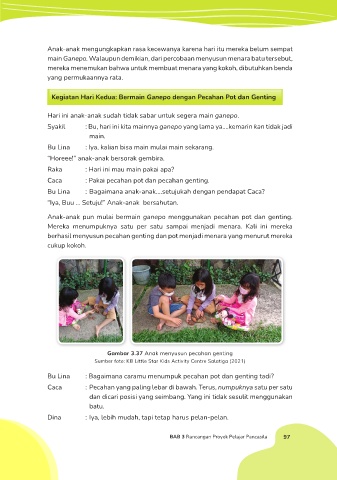 Bu Lina : Bagaimana caramu menumpuk pecahan pot dan genting tadi?