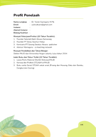 Doktor PAUD dari Universitas Negeri Jakarta, lulus tahun 2014