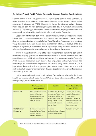 sangat erat. Capaian Pembelajaran nilai agama dan budi pekerti terkait dengan