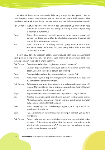 Pak Damar : Wah, sampah di rumah belum ada yang dipilah ya. Pernahkah kalia