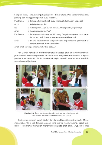 Andi : Berarti kotak susu ini tempatnya di sampah residu, ya? Masuk di