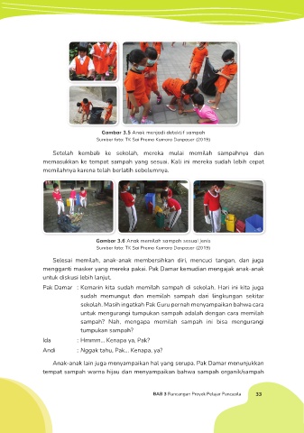 Pak Damar : Kemarin kita sudah memilah sampah di sekolah. Hari ini kita juga