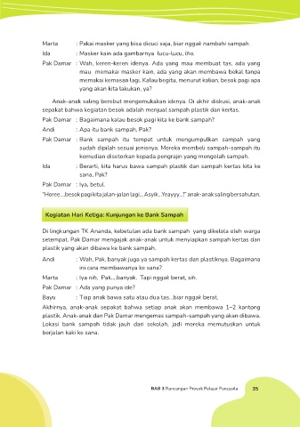 Pak Damar : Bagaimana kalau besok pagi kita ke bank sampah?
