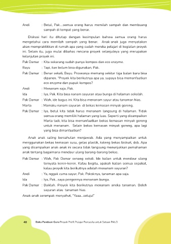 Pak Damar : Wah, Pak Damar senang sekali. Ide kalian untuk mendaur ulang